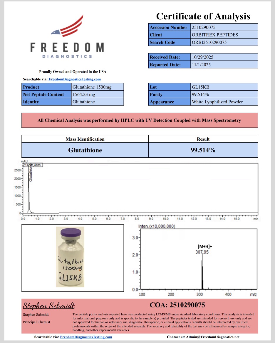 Choose Orbitrex Peptides. Choose Glutathione 1500mg. Choose confidence in every step of your research journey.