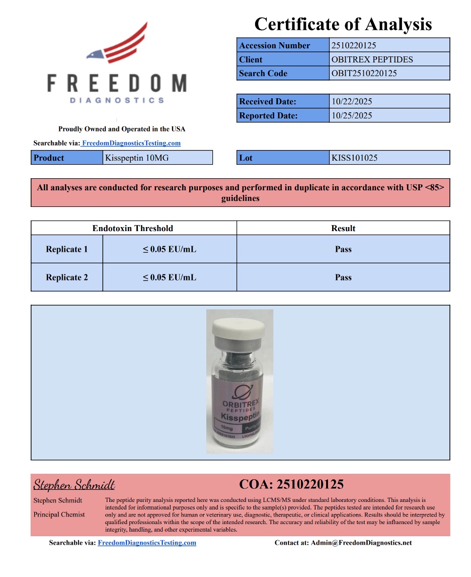Kisspeptin is supplied strictly for laboratory research purposes only. It is not intended for human consumption, medical use, or veterinary application. All handling and research must follow institutional laboratory protocols and applicable regulations.
