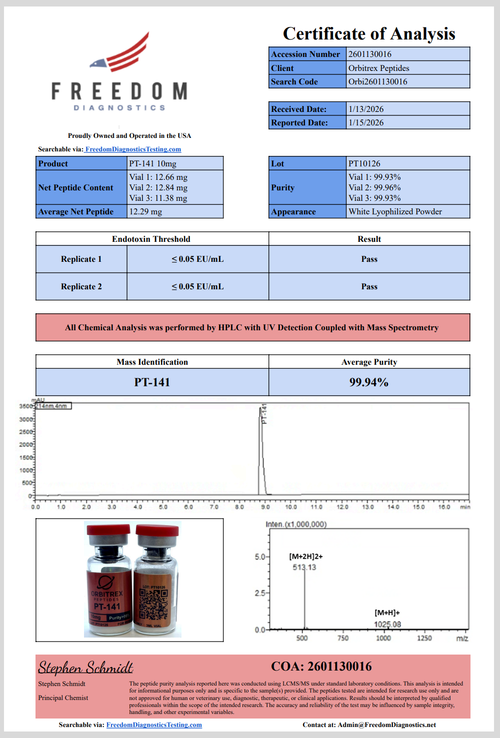 PT-141 is supplied strictly for laboratory research purposes only. It is not intended for human consumption, medical use, or veterinary application. All handling and research must follow institutional laboratory protocols and applicable regulations.