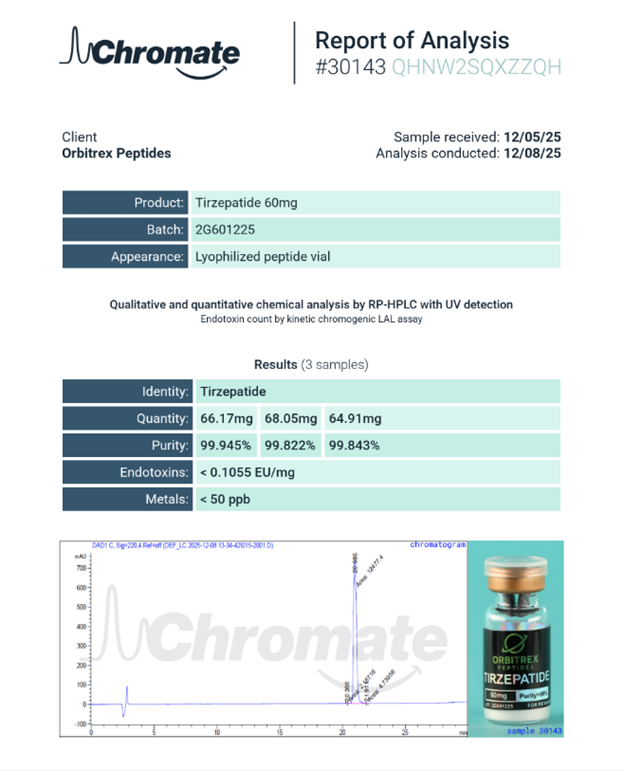 At Orbitrex Peptides, we understand that successful research requires tools that deliver uncompromising quality, reproducibility, and trust. Our 2G-TZ 60mg peptide embodies these principles, crafted for professionals who demand nothing less than excellence.